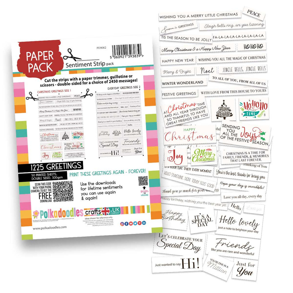 Take the stress out of card making and always have the perfect greeting to hand with this Sentiment Strip Pack. Packed with 1225 double-sided, ready-to-use sentiments, this handy pack is double-sided and printed on heavyweight 300gsm cardstock, making it very luxe and easy to trim.