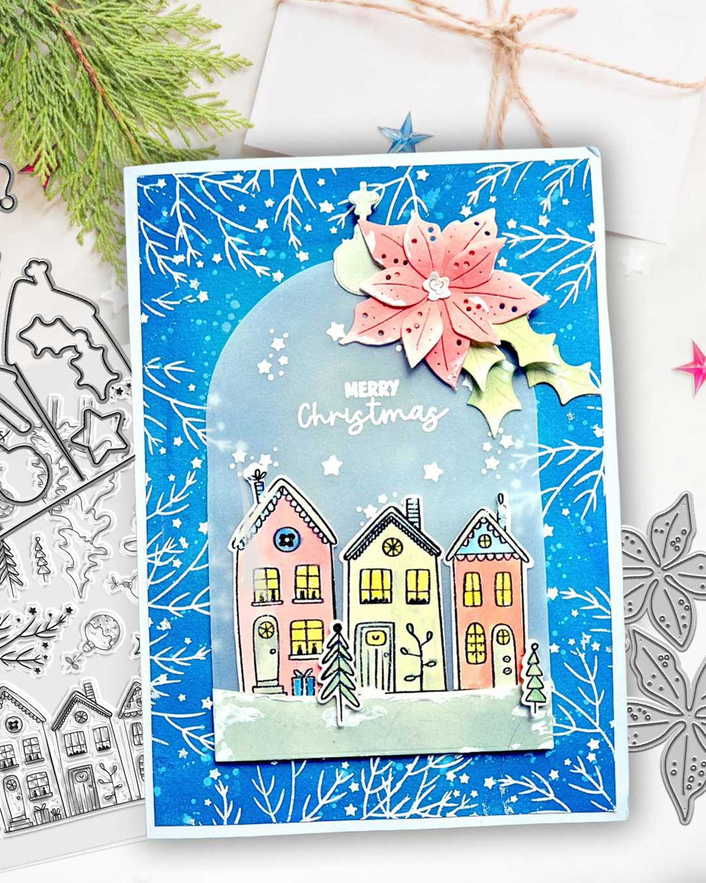 Cozy Christmas Holiday Scandi Houses A5/6 x 8" craft clear stamps and dies bundle