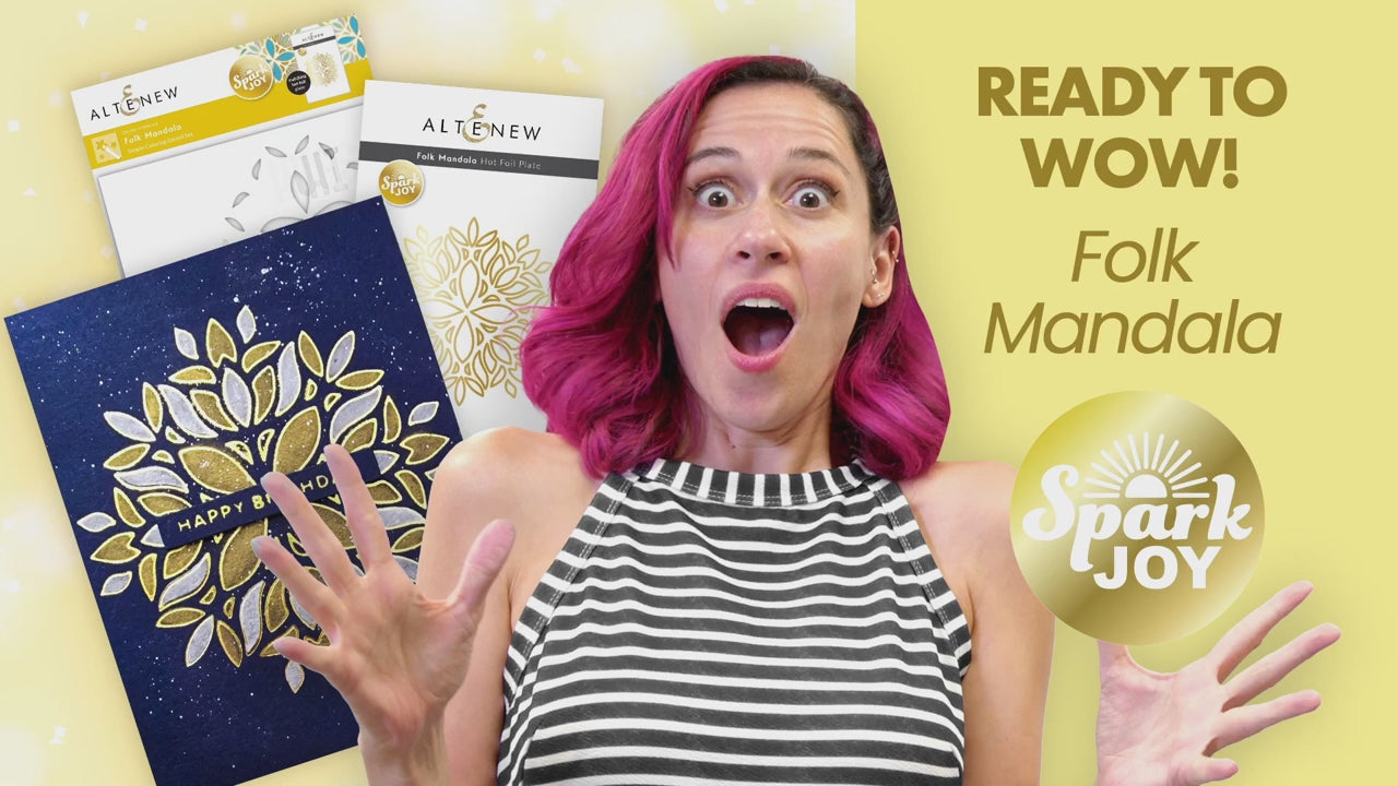 Spark Joy: Folk Mandala Hot Foil Plate showcases a bold folksy mandala with striking lines and shapes. Use it to effortlessly create backgrounds or as a focal point in your project. Add colour to the foiled image with coordinating stencils or use them separately for a unique look!